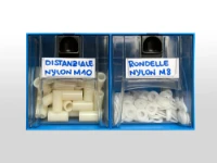 All Syncro System plastic containers, both the transparent type in PMMA and the blue type in impact-resistant polypropylene, come with provision for labels to identify contents.